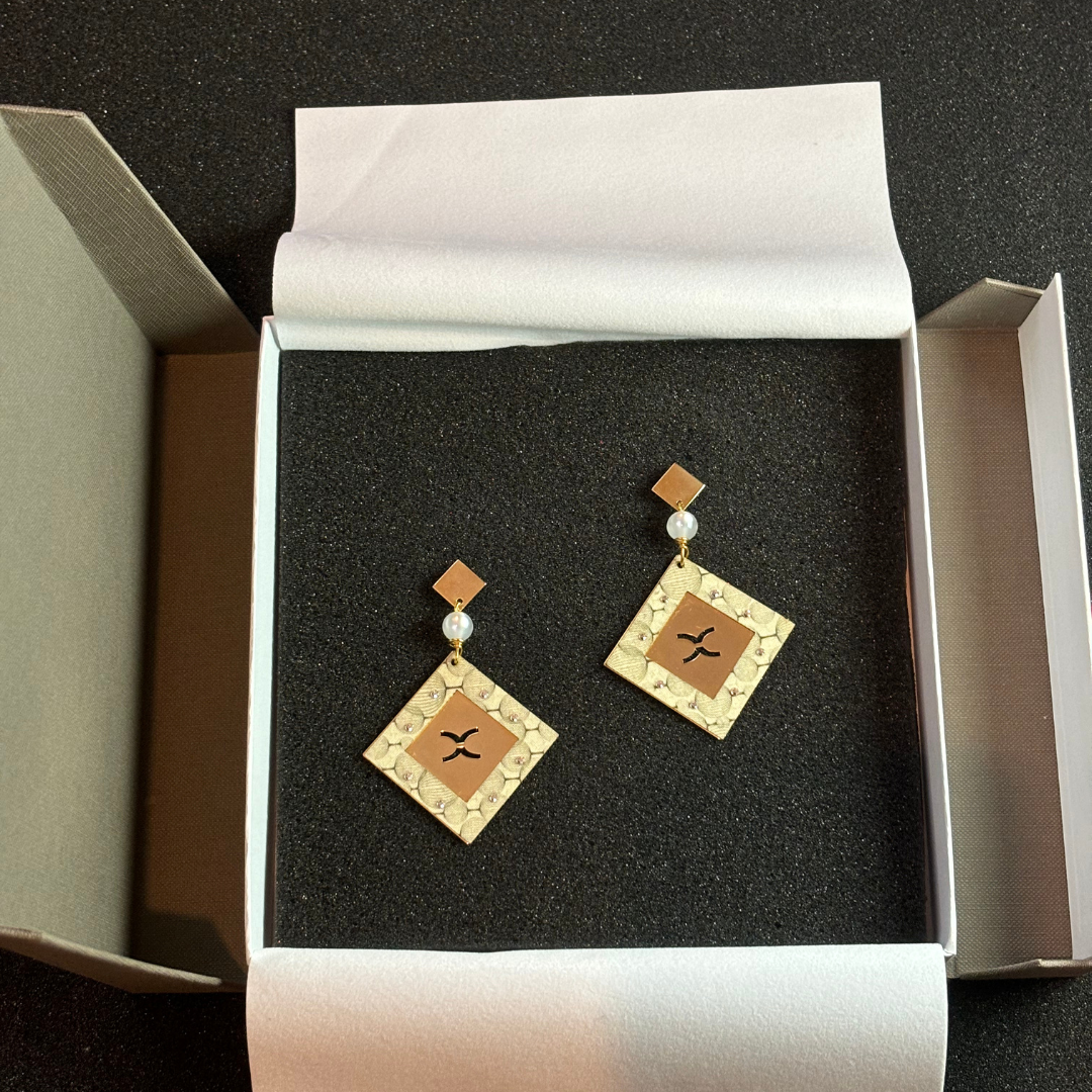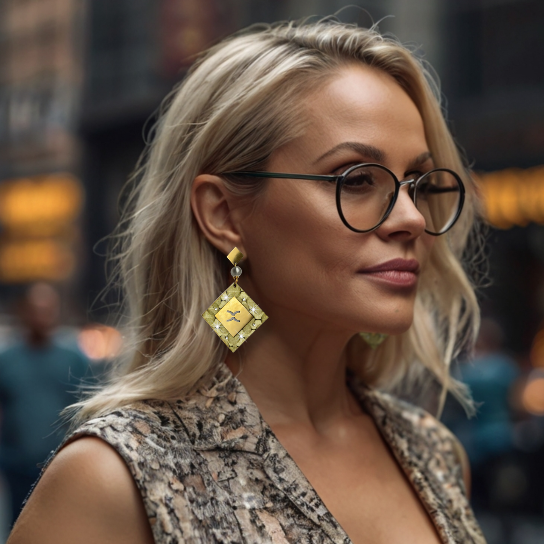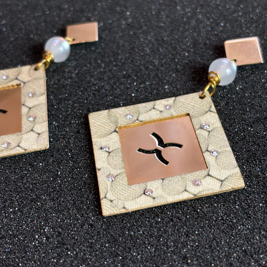 Elevate your style with our stunning earrings, crafted from high-quality silver and plated in luxurious gold. Each pair features original fabric with trendy patterns, expertly adhered to create a unique design. Adorned with sparkling Swarovski crystals and vibrant gemstones, these earrings add a touch of elegance and sophistication to any outfit. Perfect for any occasion, they are a statement piece that combines artistry and modern flair