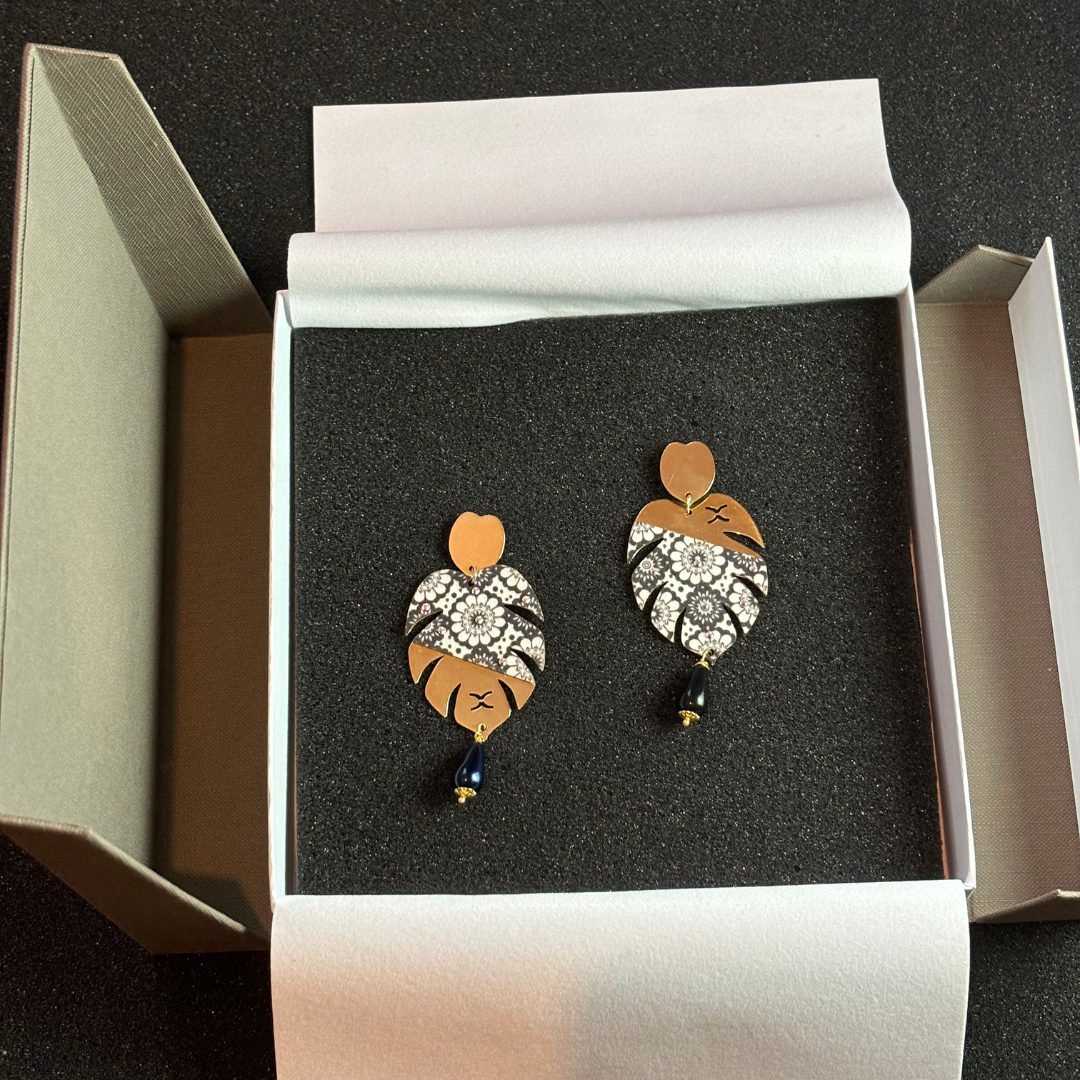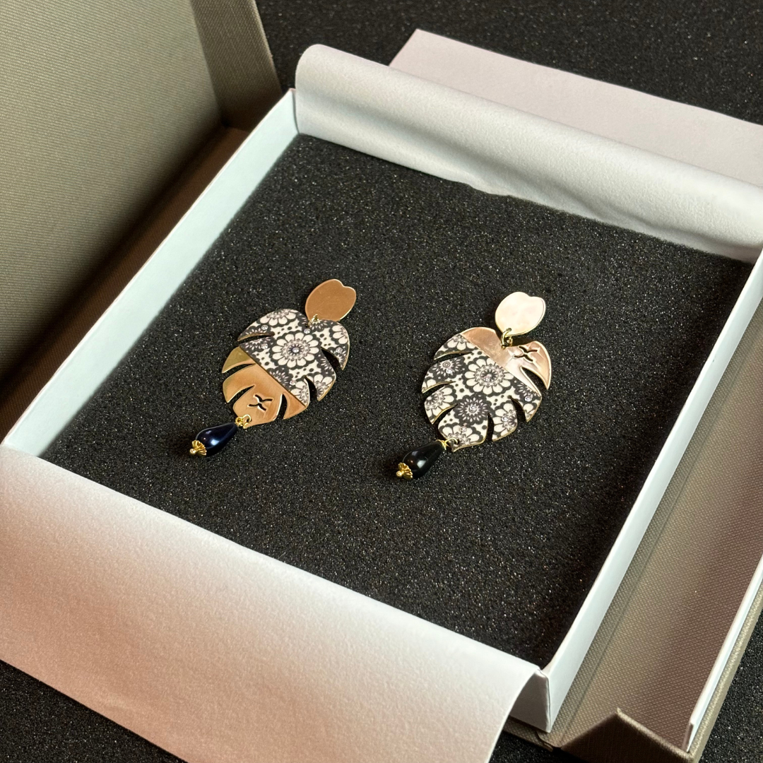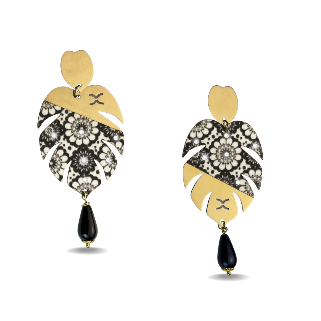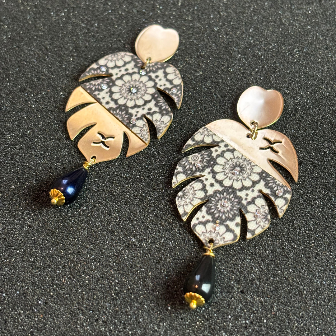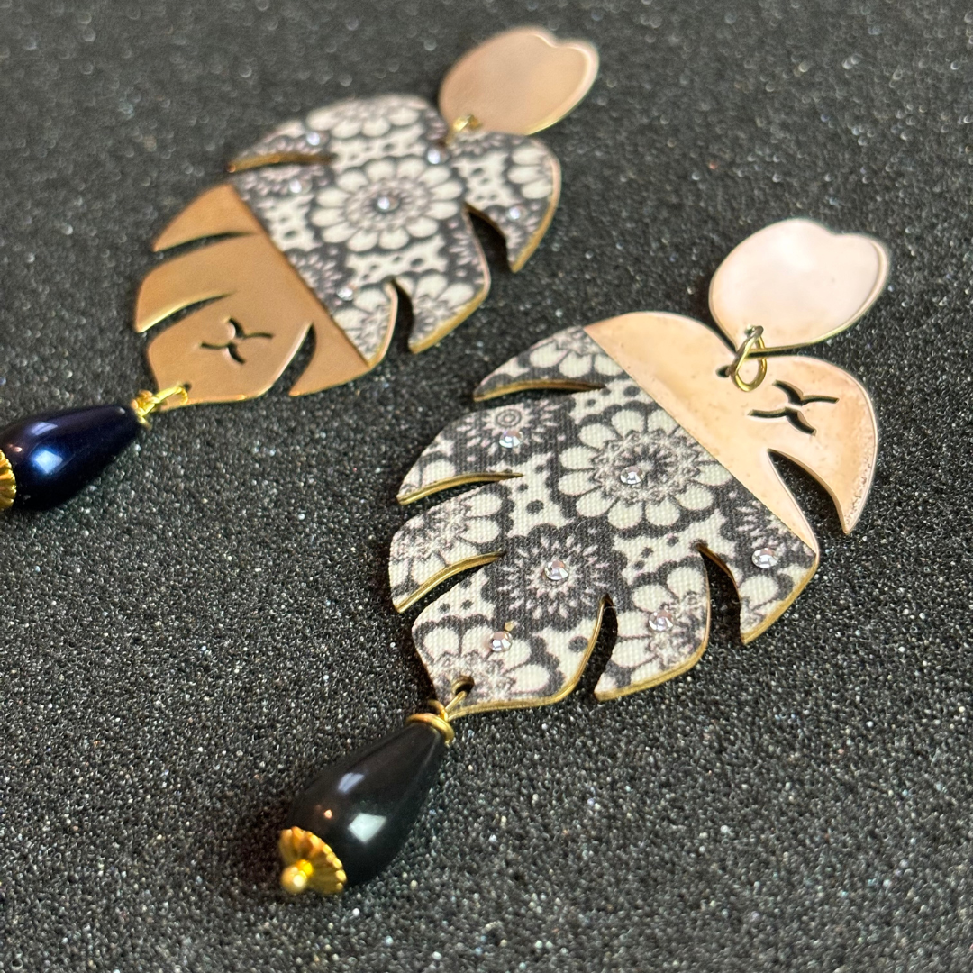 Elevate your style with our stunning earrings, crafted from high-quality silver and plated in luxurious gold. Each pair features original fabric with trendy patterns, expertly adhered to create a unique design. Adorned with sparkling Swarovski crystals and vibrant gemstones, these earrings add a touch of elegance and sophistication to any outfit. Perfect for any occasion, they are a statement piece that combines artistry and modern flair