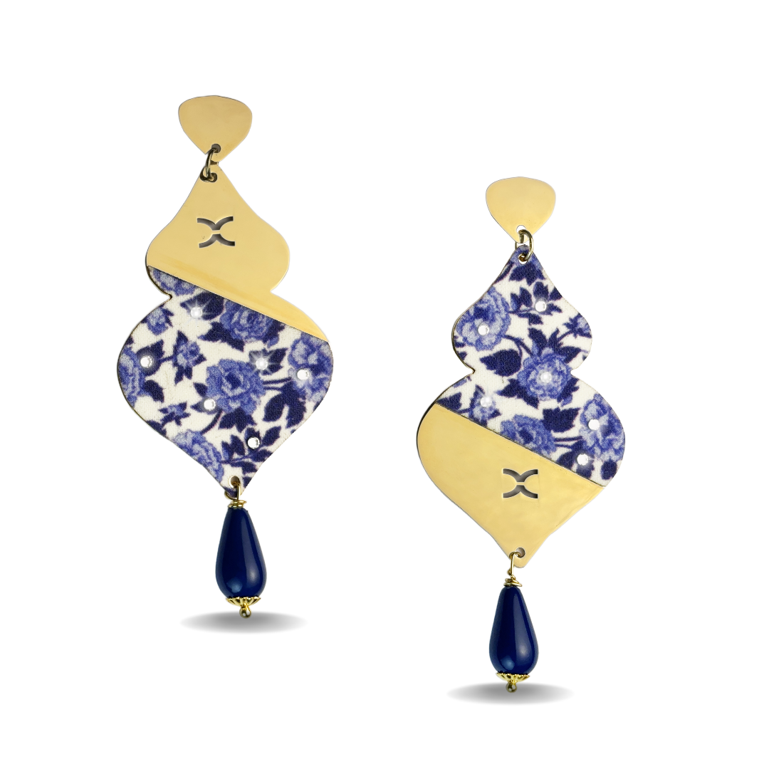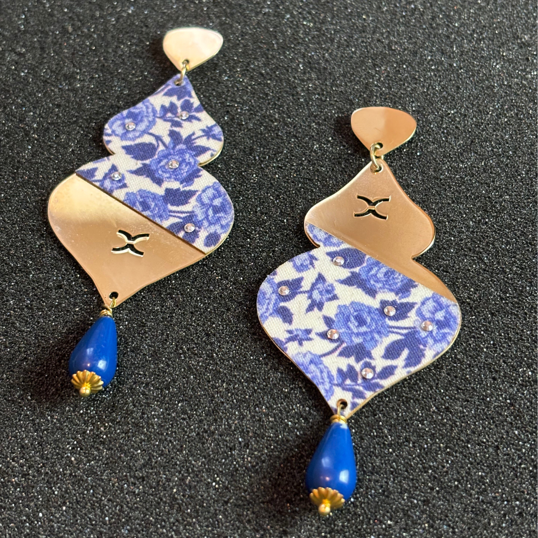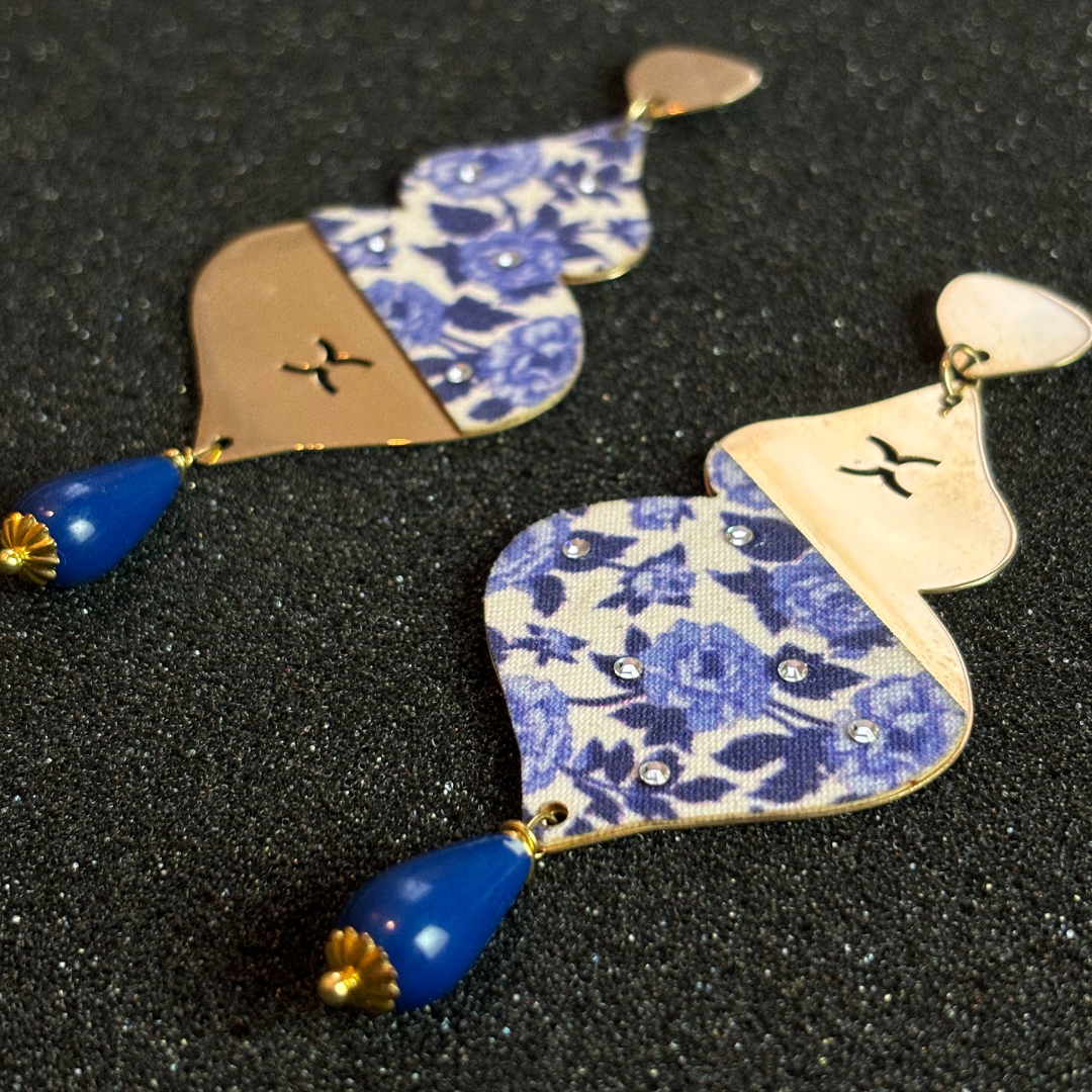 Elevate your style with our stunning earrings, crafted from high-quality silver and plated in luxurious gold. Each pair features original fabric with trendy patterns, expertly adhered to create a unique design. Adorned with sparkling Swarovski crystals and vibrant gemstones, these earrings add a touch of elegance and sophistication to any outfit. Perfect for any occasion, they are a statement piece that combines artistry and modern flair.