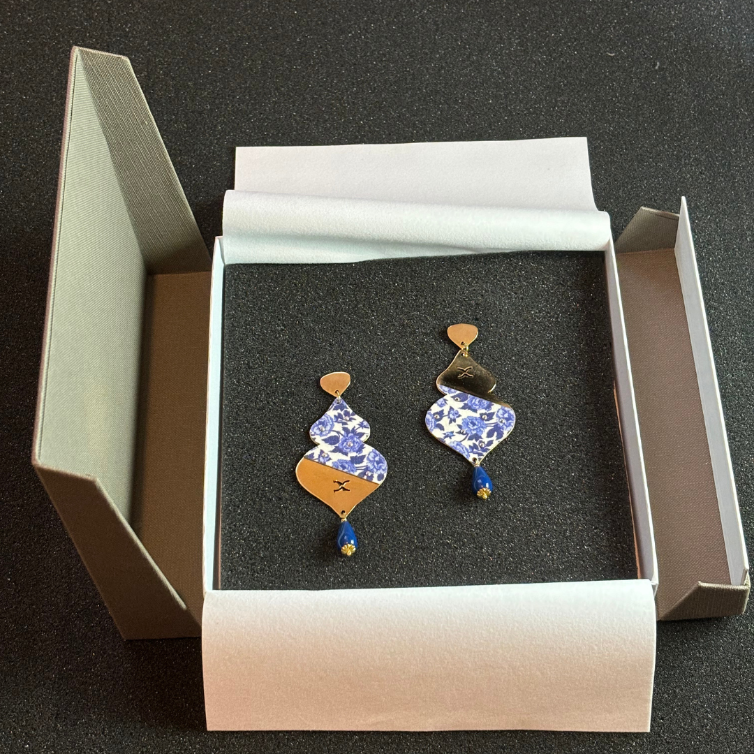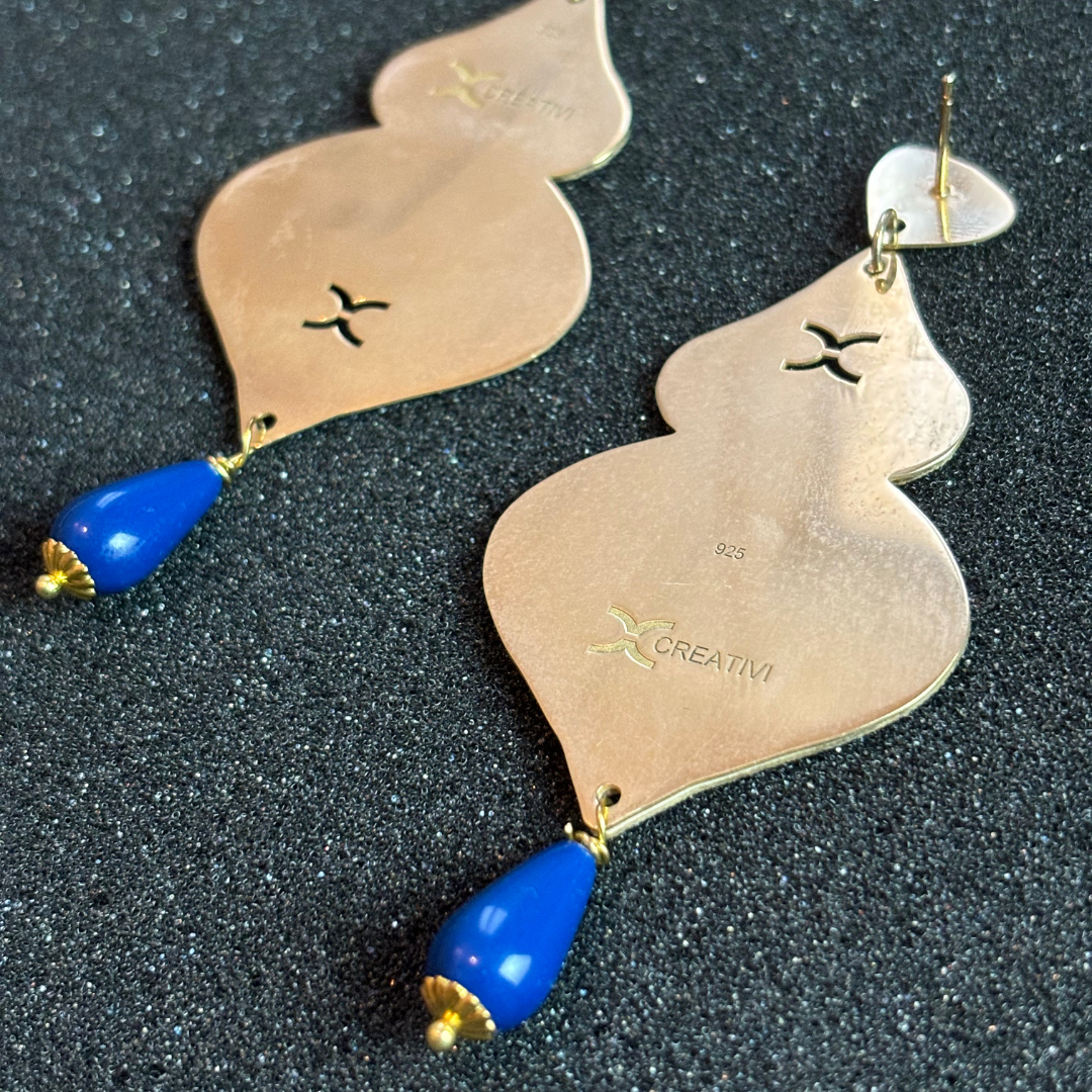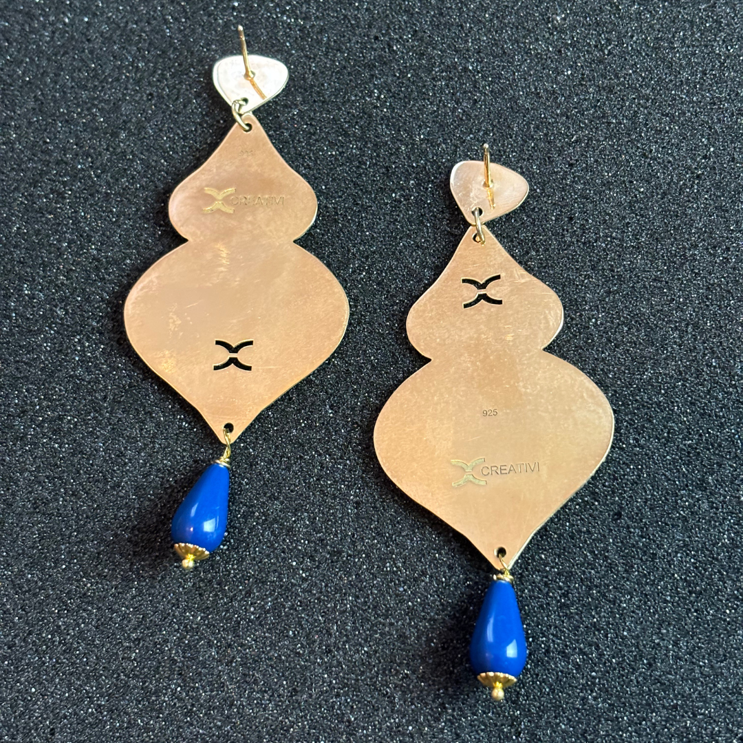 Elevate your style with our stunning earrings, crafted from high-quality silver and plated in luxurious gold. Each pair features original fabric with trendy patterns, expertly adhered to create a unique design. Adorned with sparkling Swarovski crystals and vibrant gemstones, these earrings add a touch of elegance and sophistication to any outfit. Perfect for any occasion, they are a statement piece that combines artistry and modern flair.