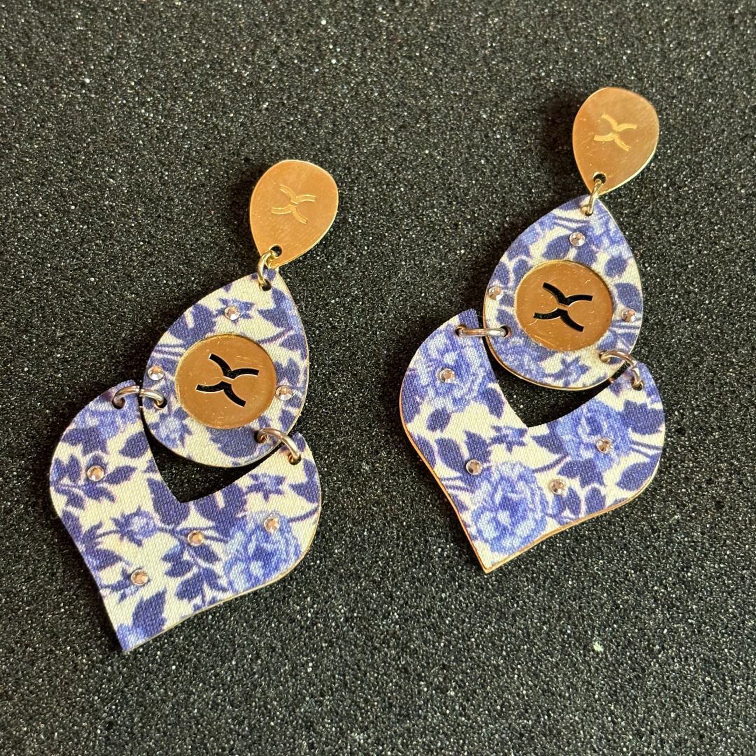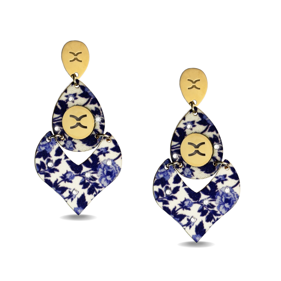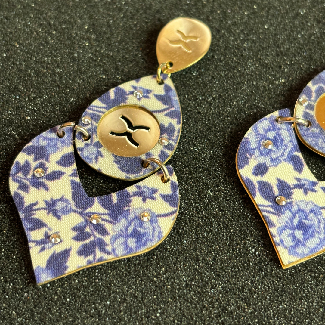 Elevate your style with our stunning earrings, crafted from high-quality silver and plated in luxurious gold. Each pair features original fabric with trendy patterns, expertly adhered to create a unique design. Adorned with sparkling Swarovski crystals and vibrant gemstones, these earrings add a touch of elegance and sophistication to any outfit. Perfect for any occasion, they are a statement piece that combines artistry and modern flair