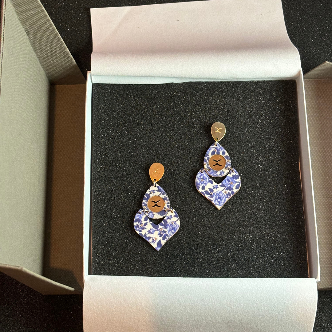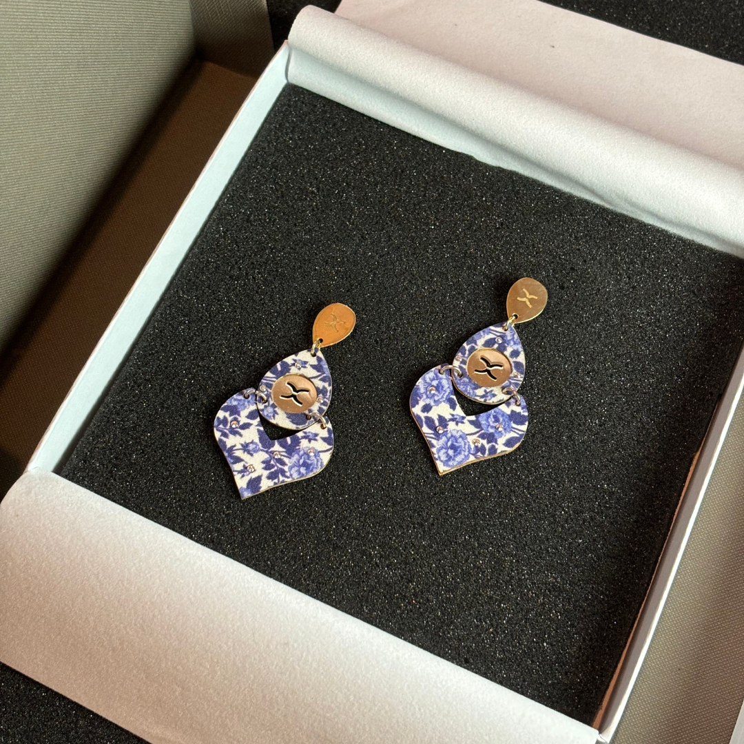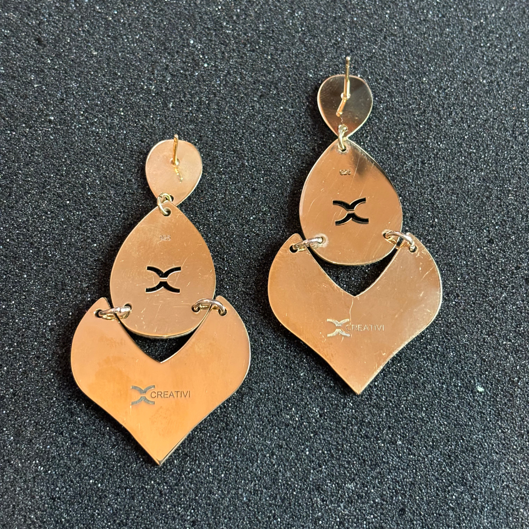 Elevate your style with our stunning earrings, crafted from high-quality silver and plated in luxurious gold. Each pair features original fabric with trendy patterns, expertly adhered to create a unique design. Adorned with sparkling Swarovski crystals and vibrant gemstones, these earrings add a touch of elegance and sophistication to any outfit. Perfect for any occasion, they are a statement piece that combines artistry and modern flair